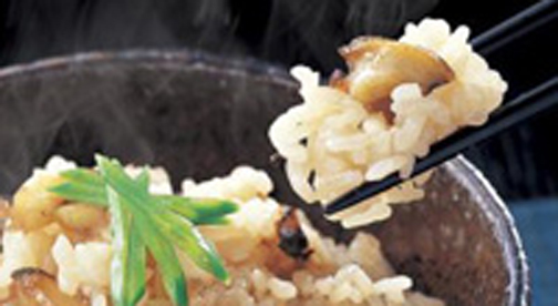 ▼隠岐の島近海で獲れたさざえを炊き込みました。トレーのまま電子レンジで調理できます。