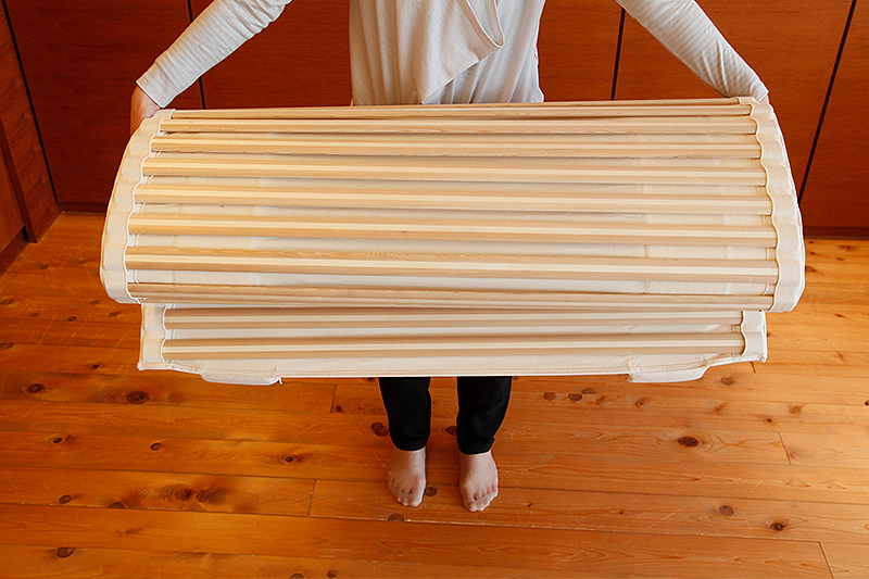 三つ折りに折り畳める、敷布団用のウッドスプリング