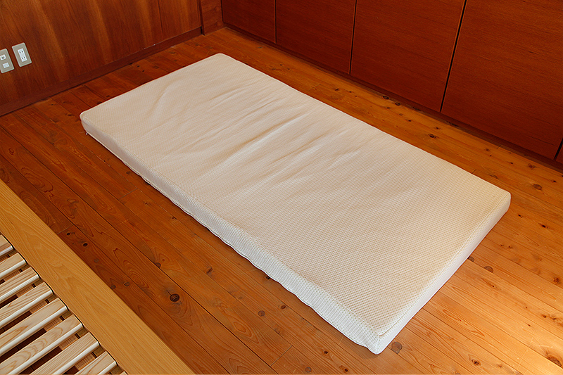 唯一の弱点は重いこと。「ミルフィ」自体はカビやダニの心配はありませんが、側地は湿気に対しての配慮が必要ですし、たまに洗濯してあげないといけません。その際に、ベッドから持ち上げるのがちょっと大変。また、天然ゴム自体は吸湿性がそれほど優れているわけではありませんから、すのこ状のベッドの上で使うか、防湿シートをベッドとの間に挟む必要があります。