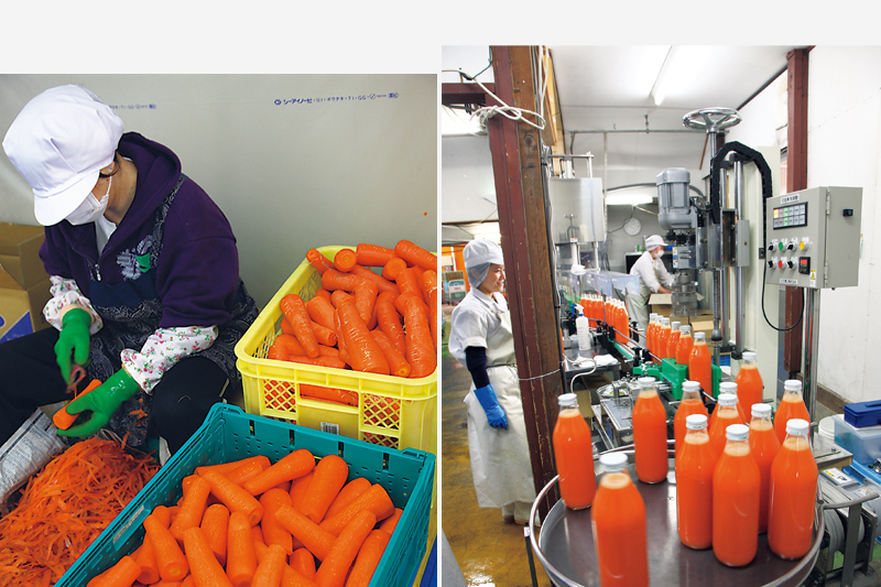 ニンジンはすべて手作業で皮を剝いてからジュースにするのです。