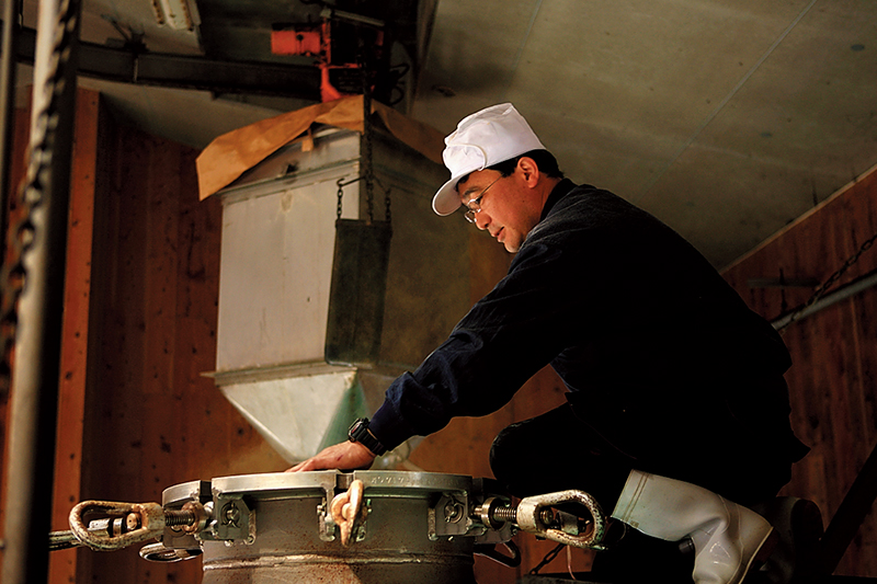 折を見ては櫂で混ぜ合わせる「櫂入れ」を行つつじっくり1~3年寝かせる中で、大豆のタンパク質が旨みに、小麦のデンプンが甘みと300以上にものぼるといわれる香り成分に変わり、豊かな風味が醸し出されていくのです。
