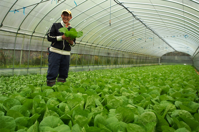 野菜時間プレミアムは、「安全・安心の味 有機・無農薬で栽培した西日本の野菜セット」でおなじみの、兵庫県丹波市市島地区の農家、岩元さんの有機栽培ホウレンソウ、または、小松菜を使用。