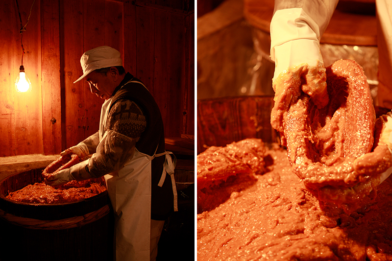 「最終的に味が美味しさの幅の中にない時には、4回目の漬け込みを行います。ですから、失敗はありません。時間をかければ美味しくなります。この時間は都会では無駄とされてしまいますが、この土地ではじっくり待つことのできる豊かな時間があるのです」