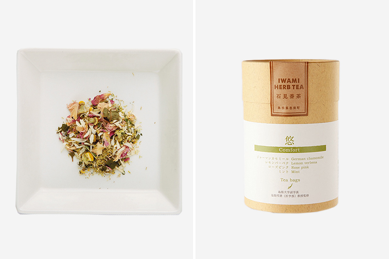 ▼島根県邑南町と自遊人が共同で開発した「石見香茶」。質の良いハーブをブレンドした、オリジナルのハーブティーです。