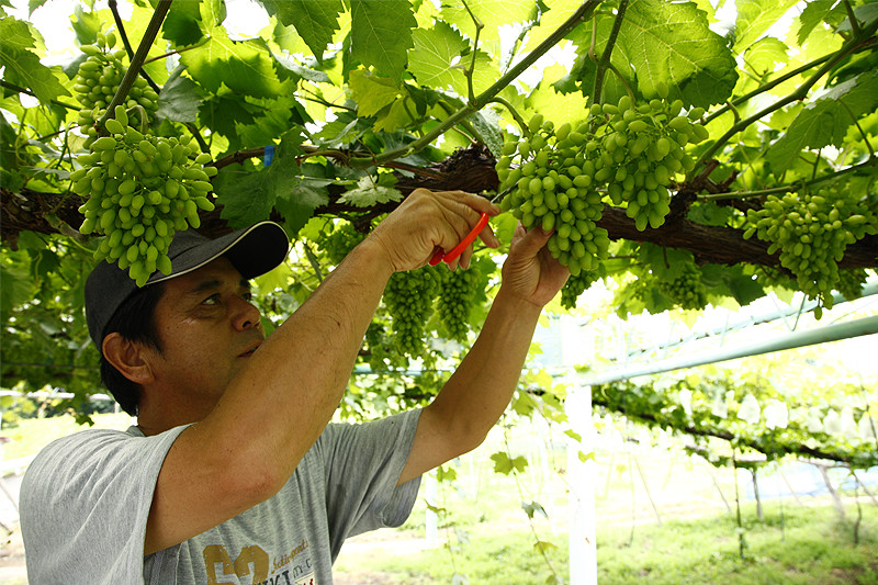 粒の大きさやハリなど、見た目にこだわるぶどう農家も多い中、佐藤さんの作り方は「とにかく“味”重視」。ぶどう作りの好条件のそろう勝沼ですが、佐藤さんは、おいしいぶどうのためのさらなる手間を惜しみません。粒のひとつひとつに本来の自然な風味が乗ったおいしいぶどうのために、さまざまな工夫をしています。