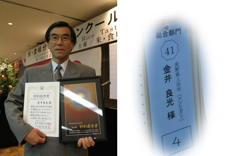 2010年度の「米・食味分析鑑定コンクール」で、4度目の入賞 特別賞受賞!