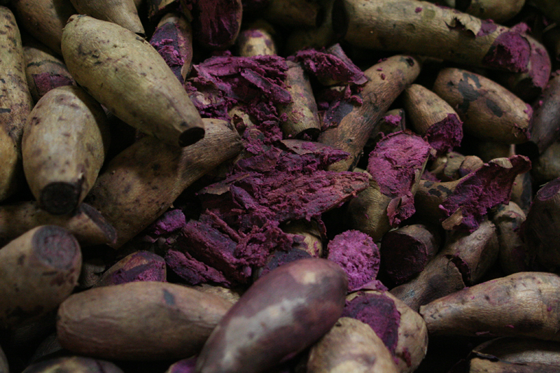 紅芋酢に使われている紅芋は一般的な芋よりも10倍以上の抗酸化力をもち、アントシアニンが豊富な「ムラサキマサリ」という品種。