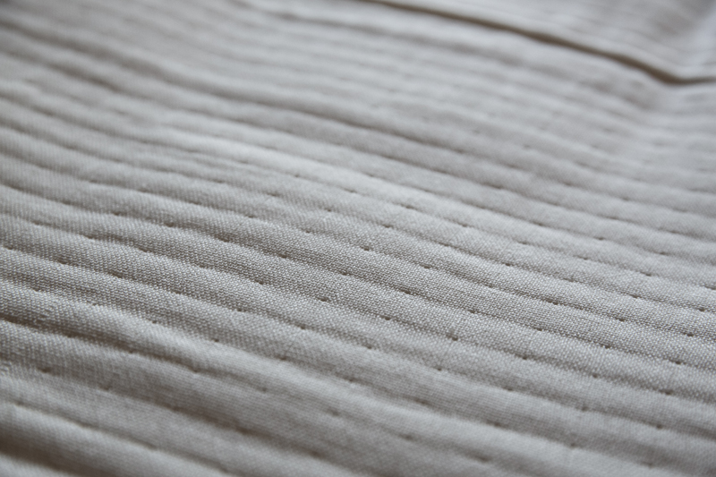 寝具の素材表記は、中に詰まっているものと側地だけです。それが商品として出来上がるまでに用いた他の素材は、スペックからは読み取れません。