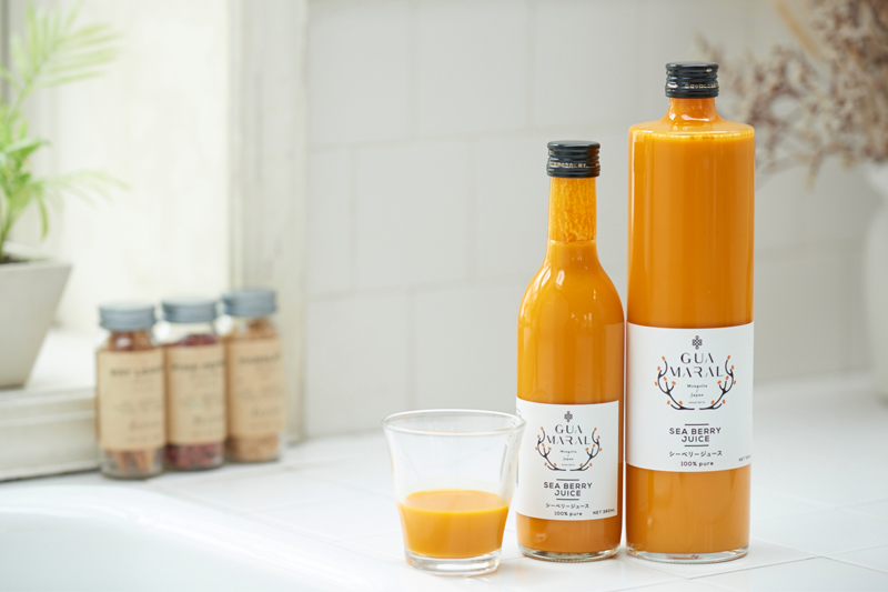 同じサジーでも、産地によって品質や風味は異なります。このジュースは、モンゴルの高山で育った果実をていねいに手摘みし、搾った果汁だけ100%。いろいろ試した結果、モンゴル産が、色、味、成分どれをとっても最高だと行きついたそうです。