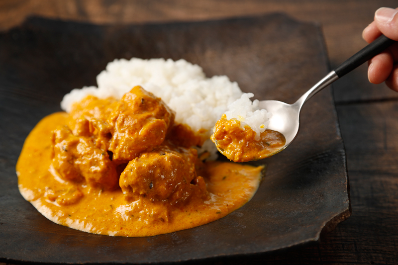 絶妙にブレンドしたスパイスと「自遊人オリジナルにんじんジュース」でチキンとトマトじっくり煮込み、旨味を引き出しています。もちろん無添加・無化調、保存料は一切不使用です!