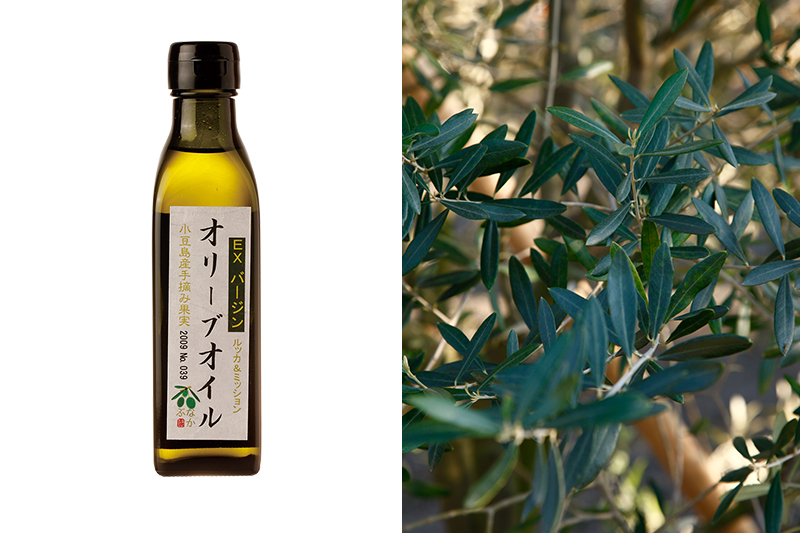 このオリーブオイルに使用しているのは、小豆島の「なかぶ庵」のオリーブ畑で手摘みで収穫されたオリーブだけ。新鮮なうちに摘み取られたオリーブを搾っています。
