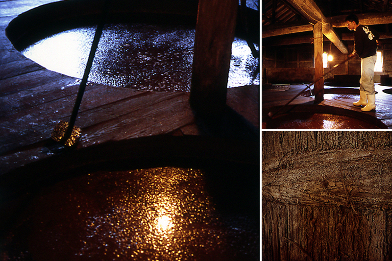完成させた醤油を木桶に戻し二度仕込みで、じっくり熟成