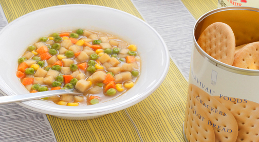 製造から25年間保存可能! 濃厚なチキンシチューとクラッカーをセットで